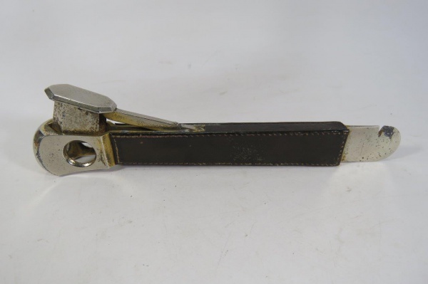 • MEMORABILIA FUMAGEIRA - ANTIGO CORTADOR de CHARUTOS (aço e couro) marca Pfeilring Solingen (Alemanha) modelo 5650 (estampado no corpo). Mede aprox. 15,5 cm