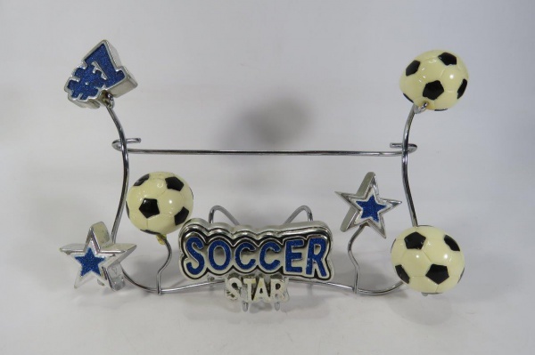 • COLECIONISMO ESPORTIVO - PORTA-RETRATOS TEMÁTICO - ESTRELA DO FUTEBOL (SOCCER STAR). O espaço para a foto é de aprox. 15 cm. Contempla lateralmente Estrelas e Bolas de Futebol.