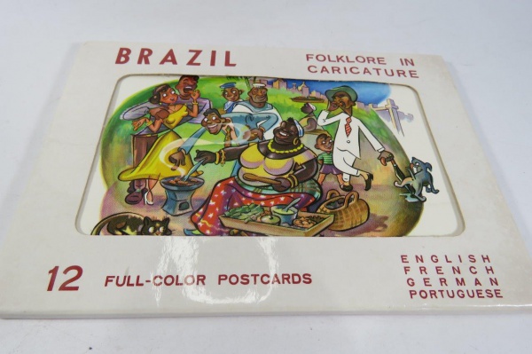 • CARTÃO POSTAL - Envelope com 12 (doze) Postais denominados BRAZIL FOLKLORE IN CARICATURE - São caricaturas criadas pelo Pintor Christo Popoff da Universidade de St. Louis - USA.