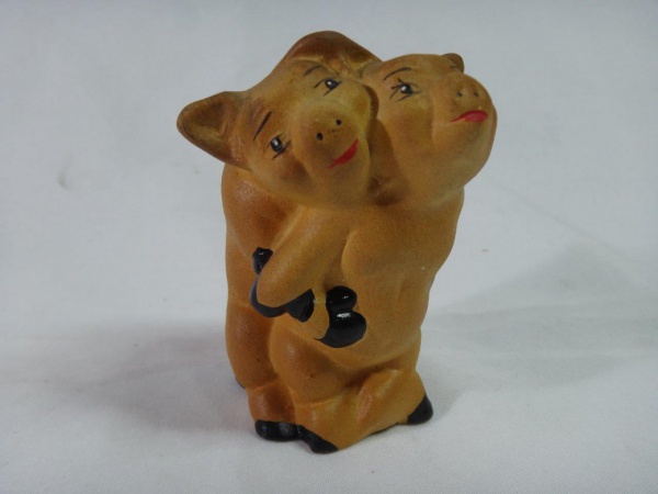 • ARTE ERÓTICA - CASAL DE PORQUINHOS EM PORCELANA - mantendo RELAÇÃO SEXUAL - Mede aprox. 10 cm de altura.