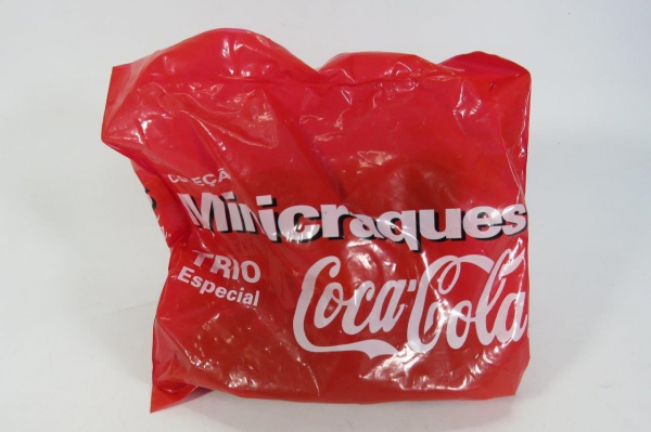 • COLECIONISMO ESPORTIVO - COLEÇÃO MINICRAQUES - Embalagem lacrada com o TRIO ESPECIAL - Jogadores da Seleção Brasileira de Futebol na Copa do Mundo de 1998 (Romario / Ronaldo e Dunga) - Promocional da Coca-Cola.