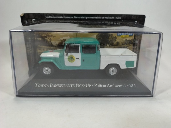 • Toyota Bandeirante Pick Up - Polícia Ambiental Rondônia - Carro miniatura Diecast na escala 1/43 - Série Veículos de serviço do Brasil - Acrílico original e embalagem lacrada