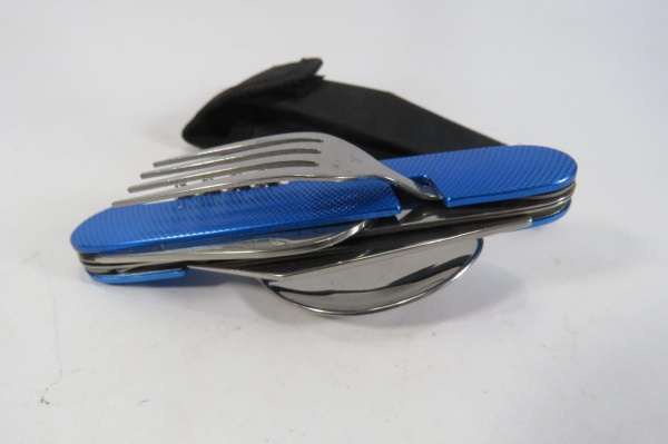 • CUTELARIA - CANIVETE MULTIUSO marca Idea. Acompanha coldre de Nylon. Contém Faca, Garfo, Colher, Abridor de garrafas e de vinho.