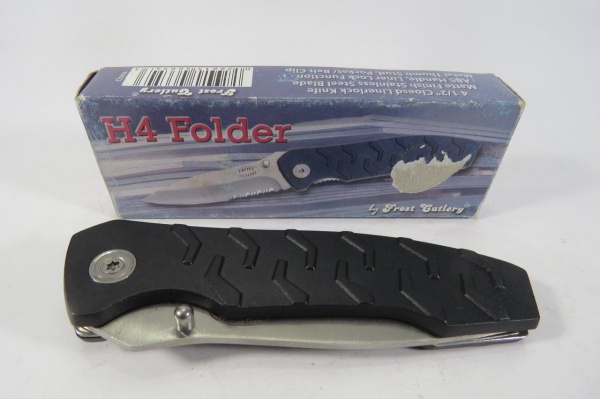 • CUTELARIA - CANIVETE H4 FOLDER / Frost Cutlery,com clip de cinta e na caixa original. Fechado mede aprox. 11 cm. Aberto mede aprox. 19,5 cm. Fabricado na China