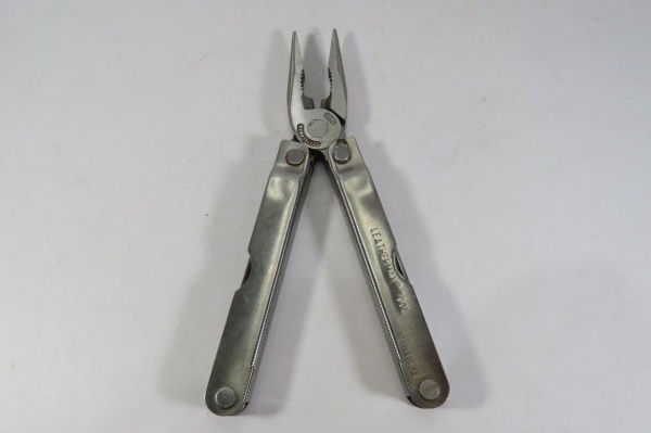 • CUTELARIA - FERRAMENTA DE BOLSO - Vintage LEATHERMAN TOOL Portland Oregon. Composto de Alicate, Canivete, Abridor de Garrafas, Régua, Chaves de Fenda e Philips, Lixa, etc. Necessita uma melhor higienização / limpeza.