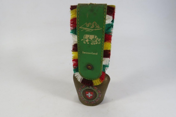 • COLECIONISMO - SINO DECORATIVO importado da Suíça, sustentado por uma alça colorida.
