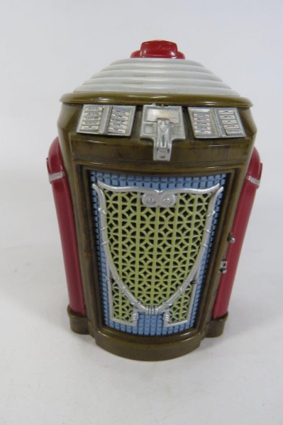 • COLECIONISMO - MINIATURA da JUKEBOX Seeburg Symphonola 147. NÃO ESTÁ FUNCIONANDO - Pilhas vazaram no compartimento adequado, sendo necessário a substituição dos condutores existentes (vide foto correspondente). Utiliza 03 pilhas to tipo AA. Não podemos garantir sua eficácia.