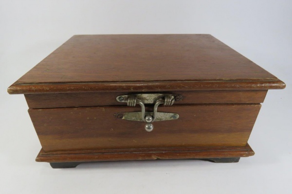 • COLECIONISMO - ANTIGA CAIXA DE COSTURA feita em Madeira. Apresenta poucas marcas do tempo. Acompanham 02 carretéis de linhas. Mede aprox. 21,5 x 17,5 x 10,5 cm. Não consta o nome do fabricante.
