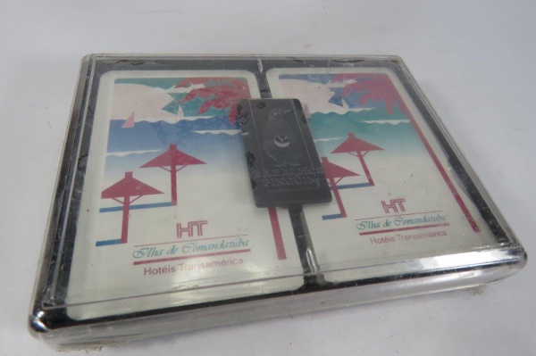 • COLECIONISMO - PAR de BARALHOS promocionais da Rede de Hotéis Transamérica - da ILHA DE COMANDATUBA. Embalagem Lacrada - BARALHOS PINGUIM.