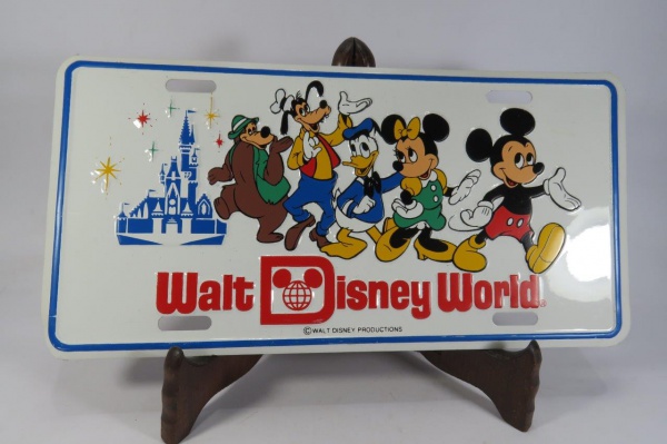 • COLECIONISMO - PLACA DE AUTOMÓVEL Decorativa da WALT DISNEY WORLD, com as figuras dos Personagens.