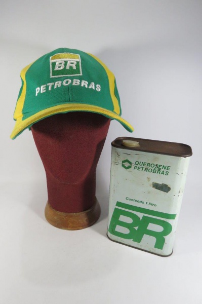 • COLECIONISMO - LOTE BONÉ da PETROBRÁS e LATA VAZIA de QUEROSENE PETROBRÁS - Embalagem de 1 litro. Mede aprox. 17,5 cm de altura.